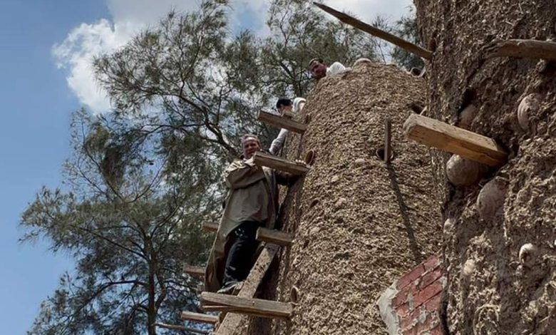 بالصور..شاهد جابر القرموطي ببرنامج مانشيت..يصعد لعدد من الأبراج لمعرفة تفاصيلها وتصميمها وكيفية عَيْش الحمام بداخلها بقرية السلاطنة بالشرقية