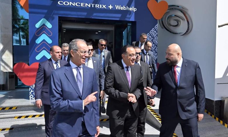 الدكتور مصطفي مدبولي رئيس مجلس الوزراء ووزير الإتصالات يتفقدا منظومة العمل بشركة “كونسنترنس + ويب هيلب” الأمريكية لخدمات الأعمال ومراكز الاتصال بالقرية الذكية.