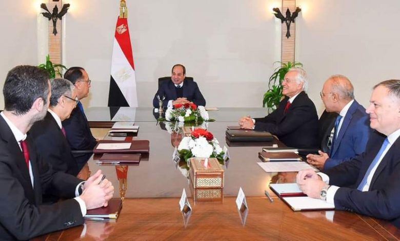 The President was offered an overview of the group’s plans for the production of renewable energy in Egypt. President El-Sisi was given a presentation on efforts exerted to boost joint work between Egypt and the group to implement a 9.5 gigawatt wind and photovoltaic power production project, which will strongly support the Egyptian economy and make a major contribution to efforts toward transition to clean energy in Egypt and Europe.