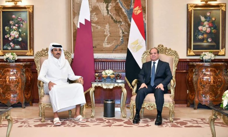 وصرح المستشار أحمد فهمي المتحدث الرسمي باسم رئاسة الجمهورية أن السيد الرئيس عبدالفتاح السيسي عقد جلسة مباحثات مع أخيه الشيخ تميم بن حمد، شهدت الإشادة بالتطور المستمر في العلاقات الثنائية بين البلدين الشقيقين، واتفق الزعيمان على مواصلة تفعيل مختلف أطر التعاون وآليات التشاور والتنسيق على كافة المستويات بين البلدين.