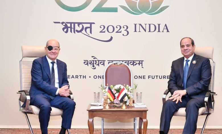 الرئيس عبد الفتاح السيسي التقي المستشار الألماني أولاف شولتز على هامش انعقاد قمة مجموعة العشرين بالهند