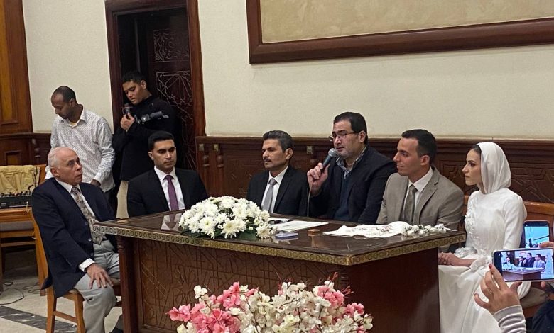 حيث قام المأذون الشرعي بعقد قران كل من سليلة الحسب والنسب المهندسة شروق محي الحنفي علي ملازم أول محمد خالد وقال الماذون للعروسين مرددين ومأمنين جميع الحضور معه : اللهم بارك لهما وبارك عليهما واجمع بينهما في خير واغنهما بحلالك عن حرامك وهب لهما الذرية الصالحة.