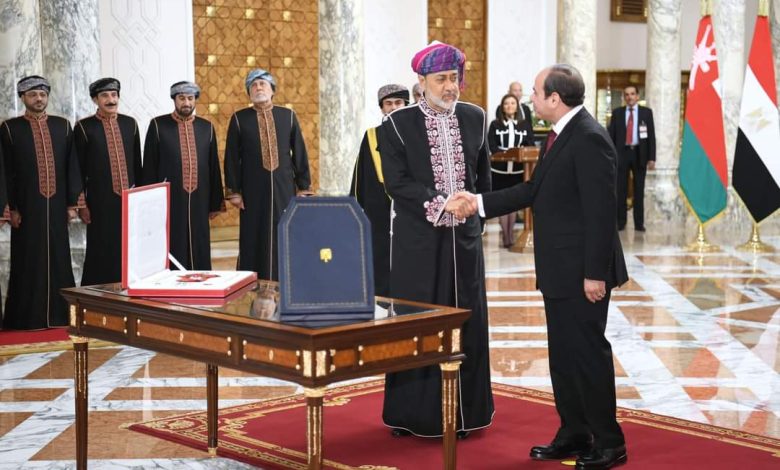 احتفاءً بزيارة سلطان عمان لمصر الرئيس عبدالفتاح السيسي والسلطان هيثم بن طارق آل سعيد يتبادلان أرفع الأوسمة