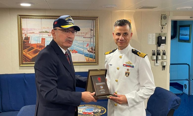 وقال السفير شن في كلمته خلال حفل الاستقبال “زارت سفينتنا العسكرية اليابان بمناسبة الذكرى المئوية للعلاقات الدبلوماسية بين تركيا واليابان. وقامت بالعديد من الزيارات الودية لدول صديقة في طريق عودتها حيث زارت قطر على سبيل المثال “.