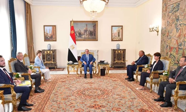 Today, President Abdel Fattah El-Sisi met with French Minister of Foreign Affairs Catherine Colonna, in the presence of Minister of Foreign Affairs Sameh Shoukry.