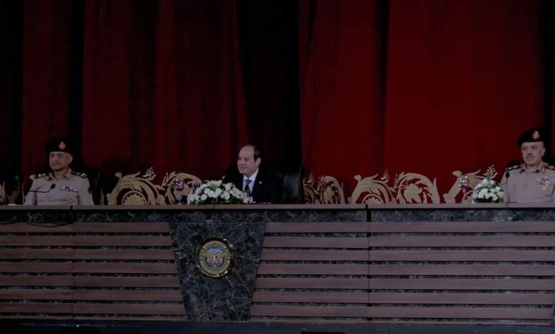 في إطار استعدادات الأكاديمية العسكرية المصرية لتخريج دفعات جديدة من طلابها لعام 2024، وفي ضوء حرص السيد الرئيس عبد الفتاح السيسي رئيس الجمهورية القائد الأعلى للقوات المسلحة علي المتابعة المستمرة لمستويات التأهيل الفكري والثقافي للطلاب، التقي السيد الرئيس عبدالفتاح السيسي صباح اليوم مع عدد من طلاب الأكاديمية الذين أنهوا دراستهم بها، وذلك بحضور الفريق أول عبد المجيد صقر القائد العام للقوات المسلحة وزير الدفاع والإنتاج الحربي، والفريق أحمد خليفة رئيس أركان حرب القوات المسلحة، وعدد من كبار قادة القوات المسلحة، وقادة الأكاديمية العسكرية المصرية، حيث دار حوار مفتوح أجاب فيه السيد الرئيس عبدالفتاح السيسي على استفسارات الطلاب بشأن مختلف الأوضاع المحلية والدولية، وفي هذا السياق أوضح السيد الرئيس عبدالفتاح السيسي أن حماية الأمن القومي عملية مستمرة بلا كلل أو ملل، مؤكداً أن تماسك ووحدة الشعب المصري هما محور الارتكاز والحماية الاستراتيجي للدولة المصرية، والضامن الأساسي للحفاظ على أمن واستقرار الوطن.
