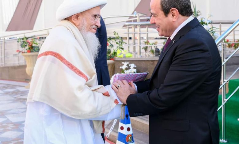 الرئيس السيسي افتتح اليوم مسجد السيدة زينب بعد انتهاء أعمال ترميمه وتجديده يرافقه السلطان مفضل سيف الدين سلطان طائفة البهرة بالهند والأمراء من أشقاء و أنجال السلطان