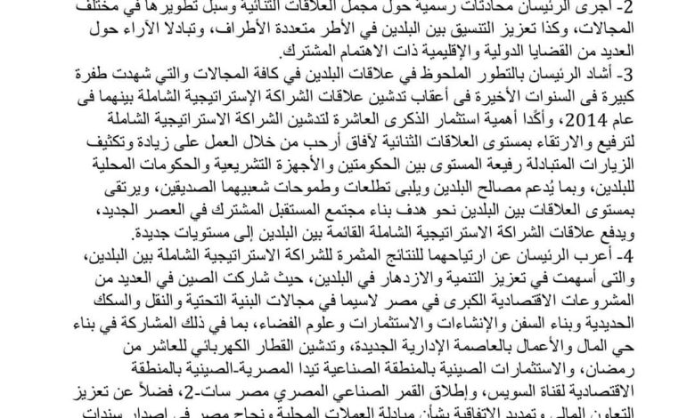 بيان مشترك بين جمهورية مصر العربية وجمهورية الصين الشعبية بشأن تعميق علاقات الشراكة الاستراتيجية الشاملة