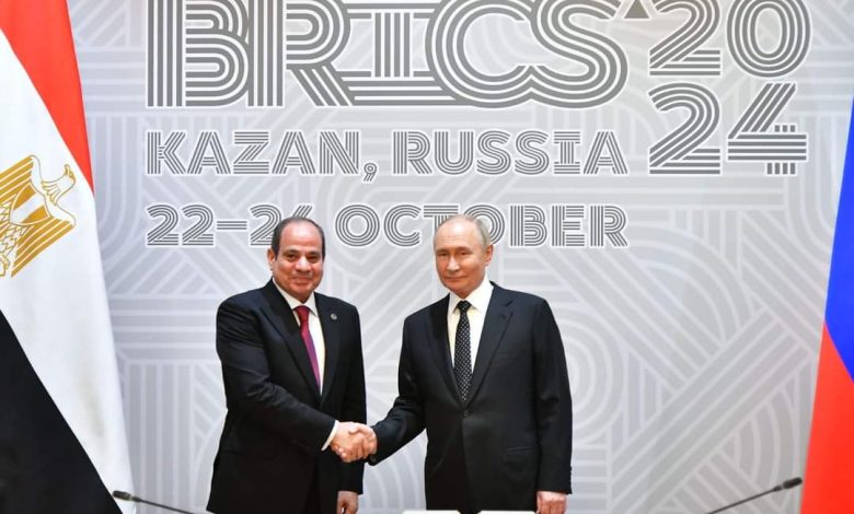 بدوره أعرب السيد الرئيس عبدالفتاح السيسي عن تقديره للمشاركة في القمة التي تستضيفها روسيا، والتي تأتي في إطار الحرص المصري على الانخراط في فعاليات وأطر التجمع، مثنياً على الجهد الذي بذلته روسيا خلال فترة رئاستها للتجمع، ومشيراً إلى الأهمية التي توليها مصر لتعزيز التعاون مع روسيا، ليس فقط على المستوى متعدد الأطراف، ولكن على مستوى العلاقات الثنائية التي تشهد تطوراً كبيراً في مختلف المجالات، استناداً إلى اتفاقية الشراكة الاستراتيجية الشاملة الموقعة بين البلدين في عام ٢٠١٨، كما ثمن السيد الرئيس عبدالفتاح السيسي التعاون بين البلدين في العديد من المشروعات المشتركة، خاصةً مشروع إنشاء المنطقة الصناعية الروسية فى المنطقة الاقتصادية لقناة السويس، ومشروع إنشاء محطة الضبعة لتوليد الكهرباء بالطاقة النووية.