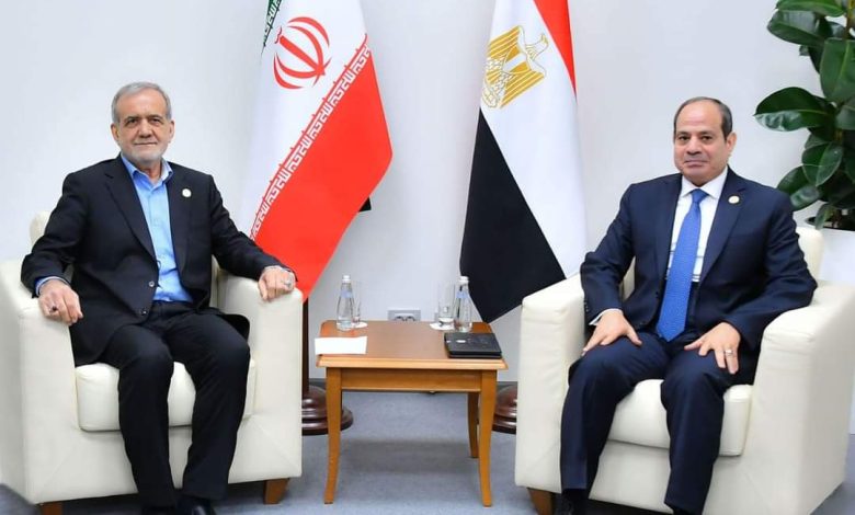 Today, President Abdel Fattah El-Sisi met with Iranian President Masoud Pezeshkian on the sidelines of the BRICS summit held in Kazan, Russia.