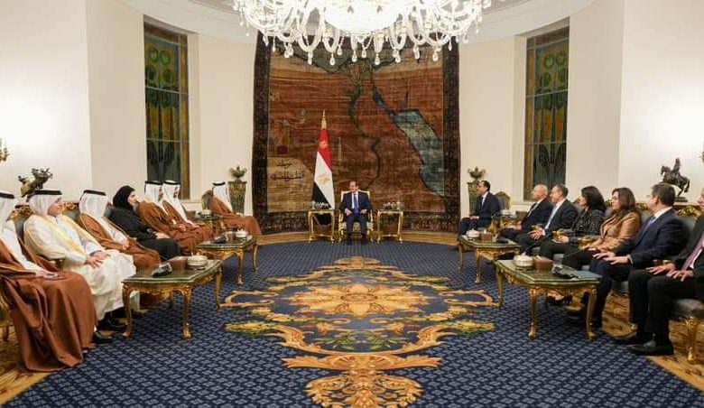 Today, President Abdel Fattah El-Sisi received Sheikh Mohammed bin Abdulrahman bin Jassim Al Thani, the Prime Minister and Minister of Foreign Affairs of the State of Qatar, and his accompanying delegation. Prime Minister Dr. Mostafa Madbouly, Deputy Prime for Industrial Development and Minister of Industry and Transport Eng. Kamel El-Wazir, Minister of Planning, Economic Development and International Cooperation Dr. Rania Al-Mashat, Minister of Local Development Dr. Manal Awad, Minister of Foreign Affairs, Emigration and Egyptian Expatriates Dr. Badr Abdel-Atty and Director of the General Intelligence Service Mr. Hassan Rashad were also present.