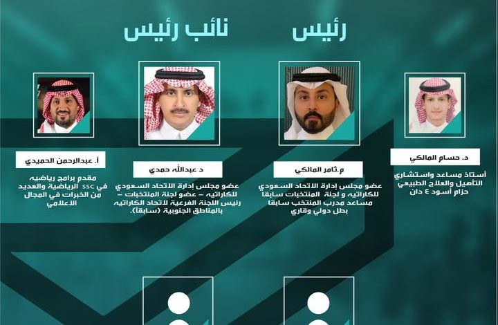 تستعد بقوة قائمة البطل الدولي والآسيوي وعضو مجلس إدارة الإتحاد السعودي للكاراتية ولجنة المنتخبات الوطنية سابقآ والمدرب المساعد للمنتخبات الوطنية السعودية السابق في رياضة الكاراتية المهندس ثامر بن محمد المالكي المرشح لرئاسة الإتحاد العربي السعودي للكاراتية وقائمتة المتميزة التي تضم نخبة من صفوة الأبطال الرياضيين والخبراء وأصحاب السمو الأمراء ورجال الأعمال بالمملكة وهم كل من الرموز والقامات وأصحاب التاريخ الوطني المشرف الحافل بالإنجازات :ـ الدكتور عبدالله بن حسن عبده حمدي المرشح علي منصب نائب الرئيس وهو عضو مجلس إدارة الإتحاد السعودي للكاراتية وعضو لجنة المنتخبات الوطنية رئيس اللجنة الفرعية للكاراتية السعودي بالمناطق الجنوبية سابقا ، وصاحب السمو الملكي الأمير تركي بن نواف بن فيصل آل سعود مرشح لعضوية مجلس إدارة الإتحاد السعودي للكاراتية فهو باحث برلماني وعلاقات دولية وله سجل حافل بالإنجازات ، الكابتن عثمان بن يوسف القصبي مرشحاً لعضوية مجلس إدارة الإتحاد السعودي للكاراتية فهو يشغل منصب الرئيس التنفيذي لشركة التعاونية للتأمين وحاصل علي درجة الحزام الاسود 1 دان ، الدكتور حسام بن عبدالله بن سعد المالكي مرشحاً لعضوية مجلس إدارة الإتحاد السعودي للكاراتية ويشغل وظيفة استاذ مساعد واستشاري التأهيل والعلاج الطبيعي وحاصل علي درجة الحزام الاسود 4 دان بدرجة خبير ، والإعلامي الكبير والبارز عبدالرحمن بن خالد محمد الحميدي، مرشحاً لعضوية مجلس إدارة الإتحاد السعودي للكاراتية فهو يشغل وظيفة مقدم برامج في قناة ssc الرياضية وله خبرات واسعة المجال في الإعلام ، الدكتورة سمر بنت أحمد عبدالله الدبيان مرشحاً لعضوية مجلس إدارة الإتحاد السعودي للكاراتية وتشغل منصب مدير الطب الرياضي في مركز موف ، والكابتن ابتهال بنت فرح سلامة العنزي مرشحاً لعضوية مجلس إدارة الإتحاد السعودي للكاراتية وهي مستشار قانوني ومهمته بالرياضة النسائية بالمملكة العربية السعودية.