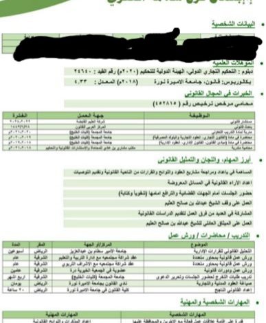 الجدير بالذكر أن الكابتن ابتهال بنت فرح سلامة العنزي حاصلة على درجة ليسانس الحقوق في القانون من كلية القانون من جامعة الأميرة نورة ، ودبلوم التحكيم التجاري الدولي من الهيئة الوطنية للتحكيم 2020 وتعمل مستشار قانوني وباحث قانوني، مدربة لمادة التدريب التعاوني، محاضرة في مادة القانون التجاري والعقود التجارية والبنوك المصرفية، محاضرة في مادة مبادئ القانون والقانون الإداري والعقود الإدارية، محامية متدربة.