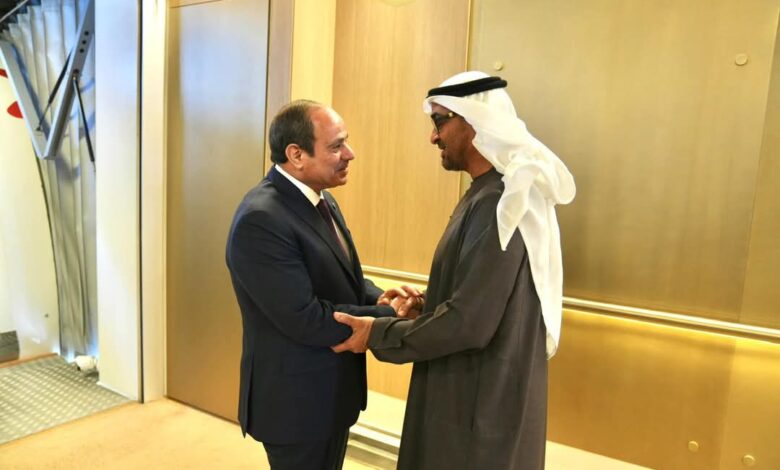استقبل صاحب السمو الشيخ محمد بن زايد آل نهيان، رئيس دولة الإمارات العربية المتحدة، اليوم السيد الرئيس عبدالفتاح السيسي رئيس جمهورية مصر العربية في مطار أبوظبي الدولي. وبعد مراسم الاستقبال، عقد الرئيسان اجتماعًا تناول العلاقات الثنائية بين البلدين الشقيقين وسبل تعزيزها بما يحقق مصالح الدولتين وتطلعات شعبيهما الشقيقين، وبشكل خاص في المجالات الاقتصادية والتجارية والاستثمارية.