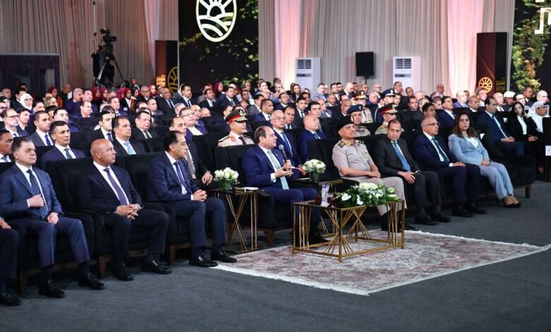 وصرح المتحدث الرسمي باسم رئاسة الجمهورية بأن الحفل تضمن عرضاً لفيلم تسجيلي بعنوان “مستقبل مصر القدرة والتنمية”، كما القى العقيد الدكتور بهاء الغنام، المدير التنفيذي لجهاز مستقبل مصر للتنمية المستدامة، كلمة تناول فيها أبرز أنشطة ومشروعات الجهاز، مستعرضاً تطورات مشروع مدينة “مستقبل مصر الصناعية” المتخصصة في مجال التصنيع الزراعي، واستهداف استصلاح ٤،٥ مليون فدان، بما في ذلك اضافة ٨٠٠ الف فدان مستصلحة للرقعة الزراعية المصرية بحلول شهر سبتمبر ٢٠٢٥، ليصبح اجمالى الاراضي القابلة للزراعة في مصر ١٣،٥ مليون فدان بحلول عام ٢٠٢٧، لضمان تحقيق الأمن الغذائي وزيادة الصادرات من المنتجات الزراعية والغذائية وتقليل فاتورة استيراد مصر للسلع الغذائية، التي تبلغ سنويا حوالي ٢٠ مليار دولار، كما تطرقت الكلمة إلى جهود الجهاز في تطوير قطاع الثروة الحيوانية والداجنة والسمكية، إلى جانب أنشطته في التعدين واستغلال الموارد المحجرية الواقعة في الاراضي التابعة له، وقيام الجهاز بطرح ٣٠٪؜ من اسهم الشركات التابعة له في البورصة لتوسيع قاعدة المشاركة الفعالة والاستفادة من ثمار التنمية، اخذا في الإعتبار أن حجم أعمال الشركات التابعة للجهاز في المجالات المختلفة (النقل – توزيع الكهرباء – الميكنة الزراعية – البتروكيماويات – مقاولات وحفر الآبار – السلع الوسيطة) يبلغ حوالي ١٠٠ مليار جنية سنوياً، كما تم استعراض نشاط الجهاز في مجالات انتاج الطاقة المتجددة والتحول الرقمي، وانشاء صوامع تخزين الغلال، ومجمع ثلاجات لتبريد وتجميد المحاصيل، ومصنع للمجففات واخر للاعلاف. وخلال الفعالية، شهد السيد الرئيس عبدالفتاح السيسي ، عبر تقنية “الفيديو كونفرانس”، افتتاح موسم الحصاد في عدة قطاعات زراعية، شملت حصاد القمح بقطاع الجنوب (شرق العوينات)، حصاد بنجر السكر بقطاع الجنوب (أسوان)، وحصاد بنجر السكر بقطاع السادات، إلى جانب افتتاح مقر جهاز مستقبل مصر للتنمية المستدامة بألماظة.