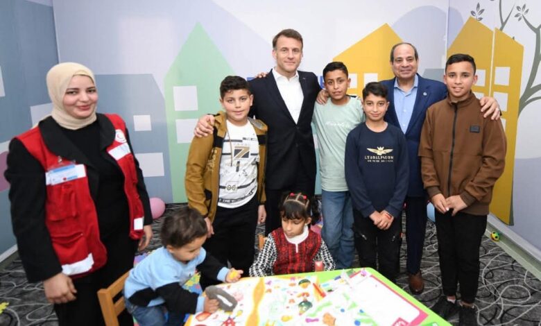 وصرّح السفير محمد الشناوي، المتحدث الرسمي باسم رئاسة الجمهورية، بأن هذه الزيارة تأتي لتأكيد تضامن فرنسا مع الجهود المصرية الكبيرة في استقبال ورعاية المصابين من أبناء الشعب الفلسطيني جراء العدوان الإسرائيلي الغاشم على قطاع غزة، حيث شملت الزيارة تفقد الرئيسين السيسي وماكرون مستشفى العريش ولقائهما بعدد من الجرحى الفلسطينيين، لا سيما من النساء والأطفال، وكذا مركز الخدمات اللوجستية التابع للهلال الأحمر المصري المخصص لتجميع المساعدات الإنسانية المقدمة من مصر وكافة الدول الموجهة إلى قطاع غزة.