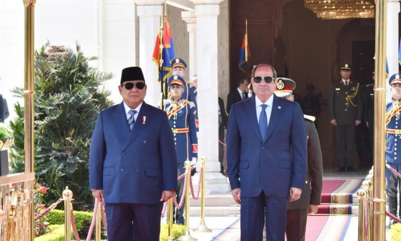 الرئيس السيسي استقبل بقصر الإتحادية الرئيس الإندونيسي برابوو سوبيانتو وتم عزف السلامين الوطنيين واستعراض حرس الشرف
