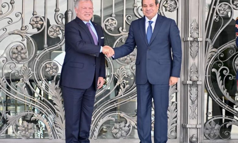 كما شهد اللقاء استعراض عدد من القضايا الإقليمية والدولية محل الاهتمام المشترك، في ضوء دور الدولتين الذي يهدف إلى تدعيم أسس الاستقرار والسلام والتنمية في المنطقة وعلى المستوى الدولي، وتطرقت المباحثات كذلك إلى تطورات القضية الفلسطينية، حيث تم التوافق على تعزيز جهود مصر والأردن نحو تقديم الدعم الكامل للأشقاء في فلسطين، ومن أجل العمل على إحياء عملية السلام للتوصل إلى حل عادل وشامل للقضية الفلسطينية وفق مرجعيات الشرعية الدولية.