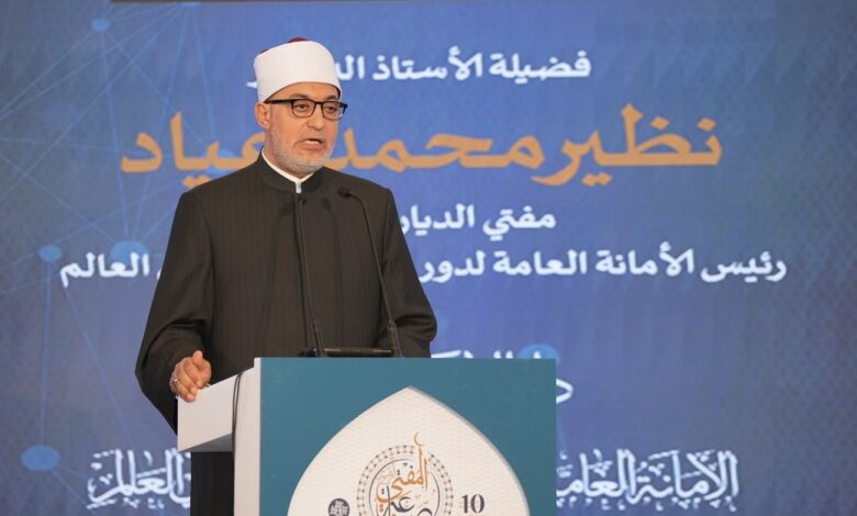 ألقى فضيلةُ الأستاذ الدكتور نظير عياد، مفتي جمهورية مصر العربية، رئيس الأمانة العامة لدُور وهيئات الإفتاء في العالم، البيان الختاميَّ لفعاليات المؤتمر العالمي العاشر للأمانة العامة لدُور وهيئات الإفتاء في العالم، والذي انعقد يومَي 12 و13 أغسطس 2025م تحت عنوان: “صناعة المفتي الرشيد في عصر الذكاء الاصطناعي”، وذلك برعاية كريمة من فخامة الرئيس عبد الفتاح السيسي، رئيس الجمهورية، في تأكيد على حرص الدولة المصرية على دعم المؤسسات الدينية ومواكبة التحولات المعاصرة.