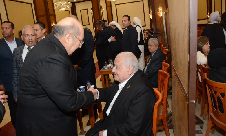 والشيوخ ورؤساء الأحزاب السياسية يتقدمهم المستشار علاء الدين فؤاد وزير المجالس النيابية والفريق محمد عباس حلمى وزير الطيران المدنى