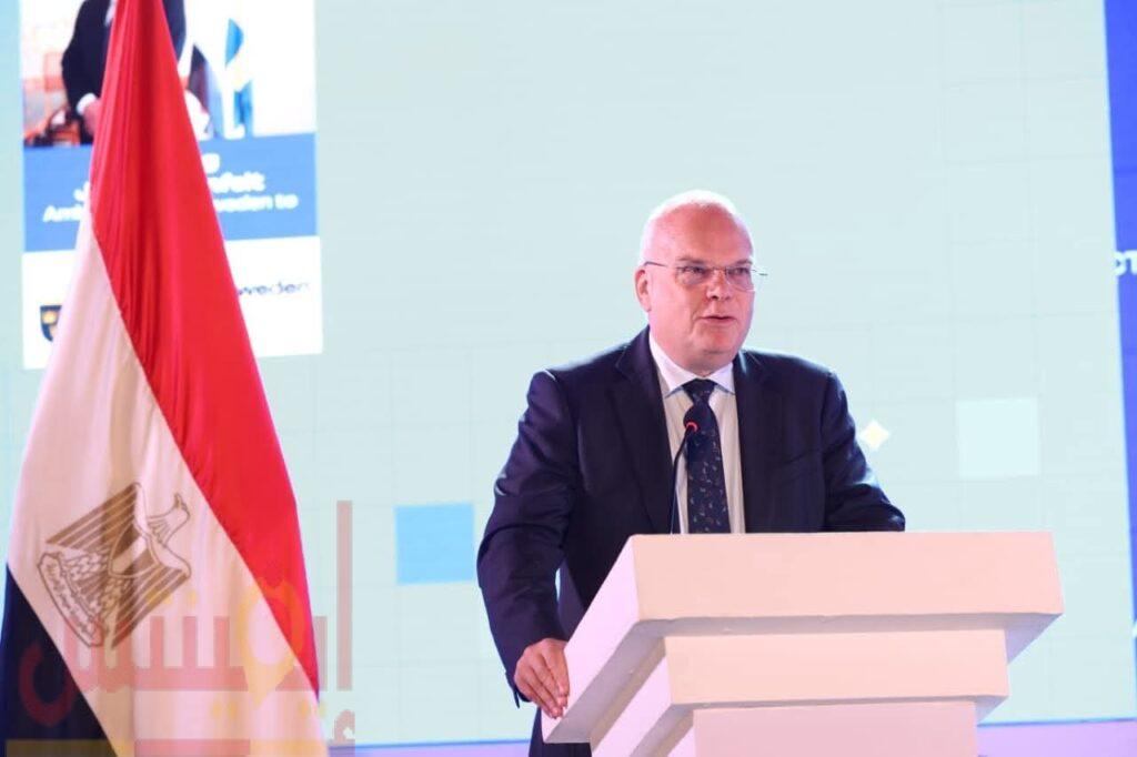 بحضور الفريق أحمد خالد سعيد محافظ الإسكندرية، والسفير داج يولين دنفيلت سفير السويد لدى مصر، والسيد أحمد الوكيل رئيس اتحاد غرف التجارة والصناعة لدول البحر الأبيض المتوسط، ورئيس الاتحاد العام للغرف التجارية وغرفة الإسكندرية، والمهندس خليل حسن رئيس الشعبة العامة للاقتصاد الرقمى والتكنولوجيا بالاتحاد العام للغرف التجارية، والدكتور/ علاء عز الأمين العام لاتحاد الغرف الأفريقية.