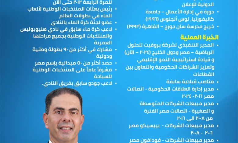 أحمد هارون توني يخوض انتخابات نادي هليوبوليس على منصب نائب الرئيس ضمن قائمة محمد المنشاوي تحت شعار: “معًا من أجل مستقبل أفضل”