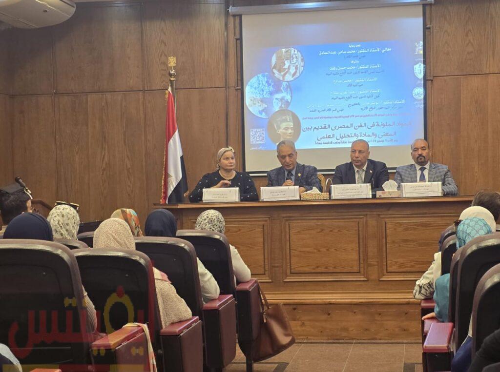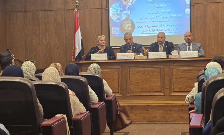في ضوء اهتمام جامعة القاهرة بدعم البحث العلمي وتنمية مهارات الباحثين والطلاب، نظم قسم الآثار المصرية بكلية الآثار بالتعاون مع مركز تنمية وتطوير المواقع الأثرية، ورشة عمل علمية بعنوان “المواد الملونة في الفن المصري القديم بين المعنى والمادة والتحليل العلمي”، وذلك تحت رعاية الدكتور محمد سامي عبد الصادق، رئيس جامعة القاهرة، وإشراف الدكتور محمد حسين رفعت، نائب رئيس الجامعة لشئون خدمة المجتمع وتنمية البيئة، والدكتور محسن صالح، عميد كلية الآثار، والدكتور عبد العزيز صلاح، وكيل الكلية لشئون خدمة المجتمع وتنمية البيئة، والدكتورة سلوى كامل، رئيس قسم الآثار المصرية القديمة، والدكتور أبو بكر موسى، مدير مركز تنمية وتطوير المواقع الأثرية.