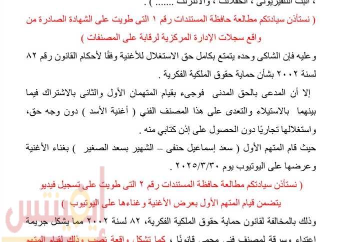 وأوضح السبكي أن المحكمة حدّدت يوم 27 تشرين الثاني (نوفمبر) الجاري موعدًا للنظر في القضية، مشيرًا إلى أن الصغير استخدم الأغنية من دون الإشارة إلى مؤلفها أو ملحنها، وهو ما اعتبره تعدّيًا صريحًا على حقوق الملكية الفكرية. وتأتي هذه الدعوى الجديدة في وقتٍ لا يزال فيه سعد الصغير يواجه أزمة قضائية أخرى، بعد أن رفضت محكمة النقض مؤخرًا الطعن المقدم منه ضد حكمٍ سابقٍ بحبسه ستة أشهر في قضية تتعلق بحيازة مواد مخدّرة أثناء عودته من الولايات المتحدة عبر مطار القاهرة.