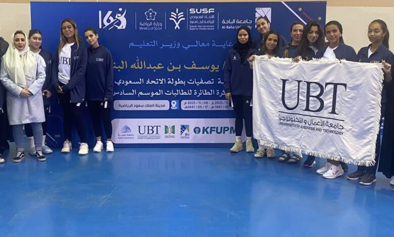 تأهل فريق جامعة الأعمال والتكنولوجيا للطالبات إلى دور الثمانية في مرحلة التصفيات ضمن منافسات المجموعة الثانية في بطولة دوري كرة الطائرة التي ينظمها الاتحاد السعودي للرياضة الجامعية، وذلك بعد خوضه سلسلة من اللقاءات التنافسية أمام خمس جامعات مشاركة في التصفيات هي: جامعة الملك فهد للبترول والمعادن ، وجامعة طيبة وجامعة الباحة ، وجامعة تبوك، بالإضافة الى جامعة الاعمال والتكنولوجيا، حيث شملت مشاركة ( 80) طالبة من مختلف الجامعات وبحضور أكثر من ( 100) شخص وأقيمت التصفيات في الصالة الرياضية بجامعة الباحة بمدينة الباحة خلال الفترة من 5-8 نوفمبر الجاري ، وشهدت المباريات مستويات مميزة وأجواء حماسية، شاركت فيها (17) طالبة من فريق الجامعة، إلى جانب الجهازين الفني والإداري، وقد اختُتمت المنافسات بفوز فريق الجامعة بالمركز الأول على المجموعة وتأهله إلى الدور النهائي بعد أداء مشرف عكس تميّز لاعبات الجامعة واستعدادهن العالي. كما تم تنظيم بطولة تنشيطية في لعبة الشطرنج على هامش بطولة الطائرة شارك فيها فريق الجامعة، كما شارك الفريق ايضاً في مباراة تبادلية في تنس الطاولة. هذا وقد تم تنظيم ورشة عمل مركزية بعنوان ( القوانين الجديدة في كرة القدم للصالات) شاركت فيها مديرة النادي الرياضي رئيسة الوفد المشارك في البطولة وتأتي هذه المشاركة في إطار حرص عمادة شؤون الطلاب على تعزيز النشاط الرياضي الجامعي، وصقل مهارات الطلبة، وتشجيعهم على خوض المنافسات الوطنية بما يعزز روح التحدي والإنجاز، ويسهم في الارتقاء بمستوى الأداء الرياضي للجامعة وفق مؤشرات الأداء الرياضي للجامعات السعودية.