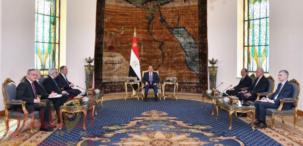 استقبل السيد الرئيس عبد الفتاح السيسي رئيس جمهورية مصر العربية ، اليوم، السيد “سيرجي لافروف”، وزير خارجية روسيا الاتحادية، وذلك بحضور الدكتور بدر عبد العاطي، وزير الخارجية والهجرة وشئون المصريين في الخارج، ومن الجانب الروسي السيد سيرجي فيرشينين، نائب وزير الخارجية، والسيد جيورجي بوريسينكو، سفير روسيا الاتحادية بالقاهرة، والسيد اليكساندر كينشاك، مدير إدارة الشرق الأوسط وشمال أفريقيا بوزارة الخارجية، والسيد ميخائيل دجيرغينيا، مدير القسم في إدارة الشرق الأوسط وشمال أفريقيا بوزارة الخارجية.