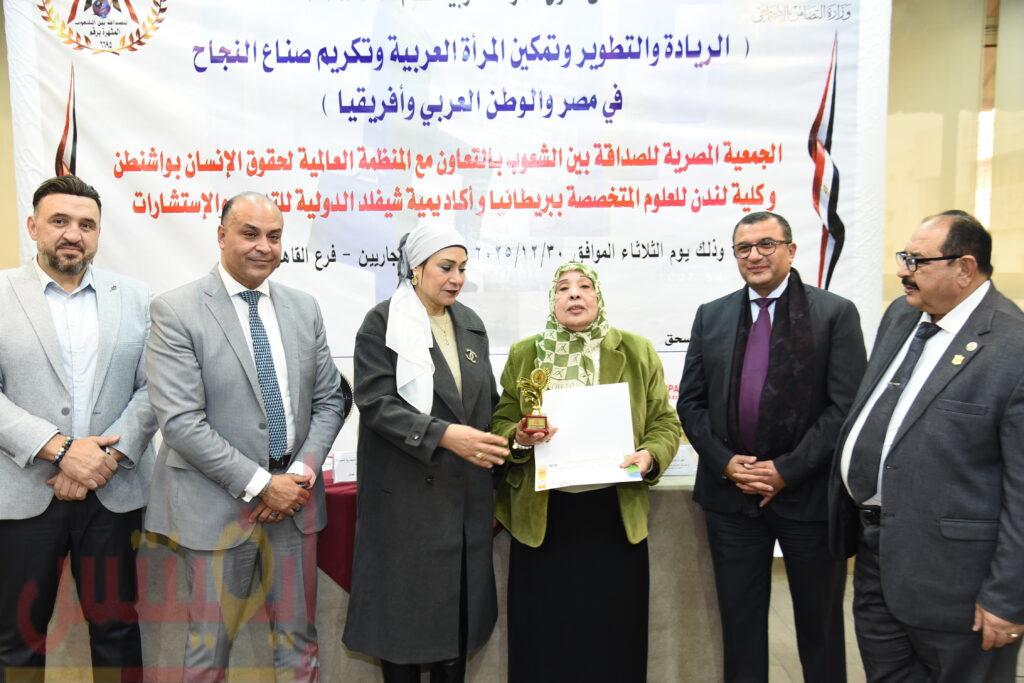 كما أكدت اللواء هبة أبو العمايم، الرئيس الشرفي للجمعية المصرية للصداقة بين الشعوب، وأول ضابطة تحصل على رتبة لواء ودرجة الدكتوراه، أن المرأة هي صانعة الرجل والداعم الرئيسي له، مشيرة إلى أهمية الدور المجتمعي في دعم المرأة، وضرورة القضاء على ختان الإناث وزواج القاصرات، مؤكدة أن النجاح هو البصمة الحقيقية التي يتركها الإنسان في المجتمع.