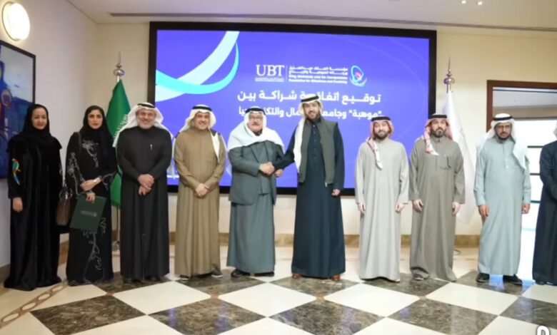 وقد وقّع الاتفاقية عن جامعة الأعمال والتكنولوجيا رئيس مجلس الأمناء الدكتور عبد الله بن صادق دحلان، فيما وقّعها عن مؤسسة «موهبة» الأمين العام الأستاذ عبد العزيز بن صالح الكريديس. وتهدف الشراكة إلى تعزيز التعاون الأكاديمي والبحثي، وتبادل المعرفة والخبرات بين المختصين، ورفع كفاءة الكفاءات الوطنية في مجال رعاية الموهوبين وتنمية قدراتهم.
