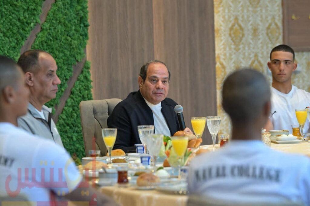 وأضاف المتحدث الرسمي أن السيد الرئيس عبدالفتاح السيسي تناول وجبة الإفطار مع طلاب الأكاديمية، وتبادل معهم الحوار، حيث أكد سيادته على أهمية ممارسة الرياضة، وضرورة ترسيخ ثقافة الرياضة بين أبناء الشعب المصري، مشددا سيادته على أهمية استمرار طلبة الأكاديمية في ممارسة الرياضة بعد تخرجهم.
