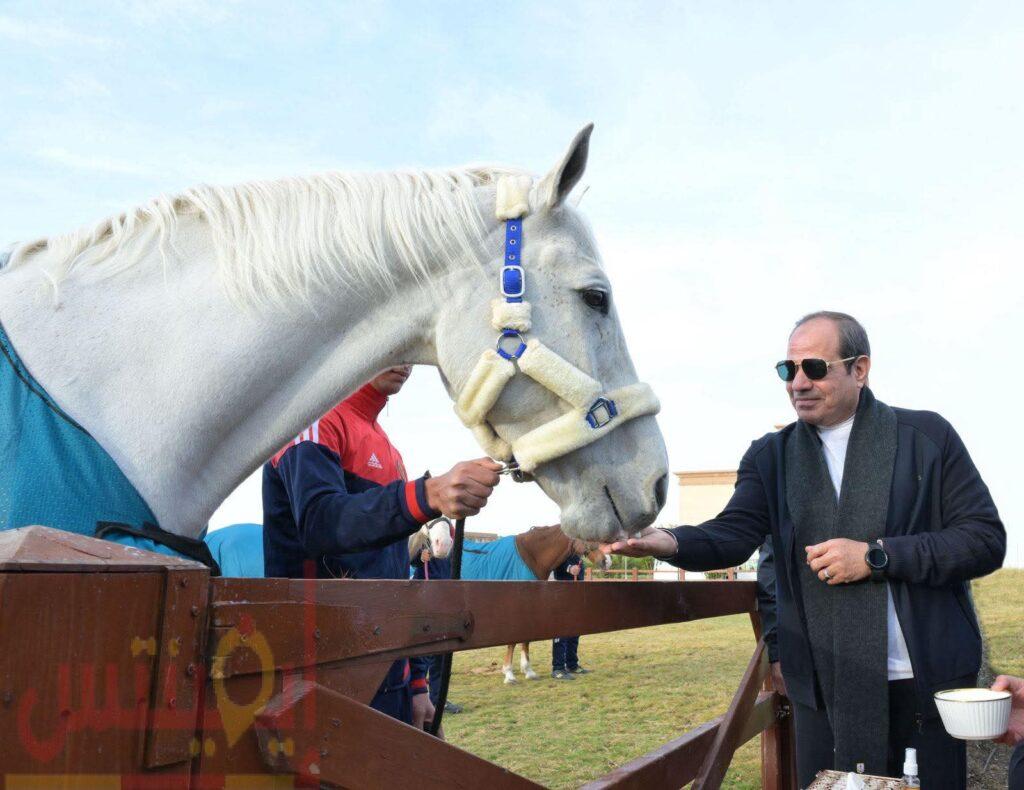 وبنادي الفروسية، تم عرض أحدث المستجدات والتطورات المرتبطة بالنادي، بالتزامن مع عروض القوس والسهم وقفز الفروسية، ثم توجه السيد الرئيس عبدالفتاح السيسي إلى أرض طلق الخيل لمتابعة تجربة نواة الخيل.