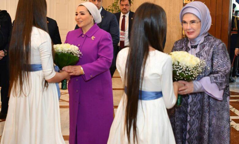 سيدة مصر الأولى إنتصار السيسي ترحب بزيارة أمينة أردوغان حرم رئيس جمهورية تركيا