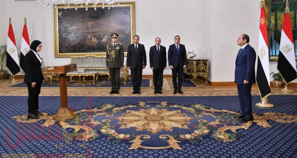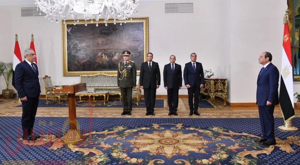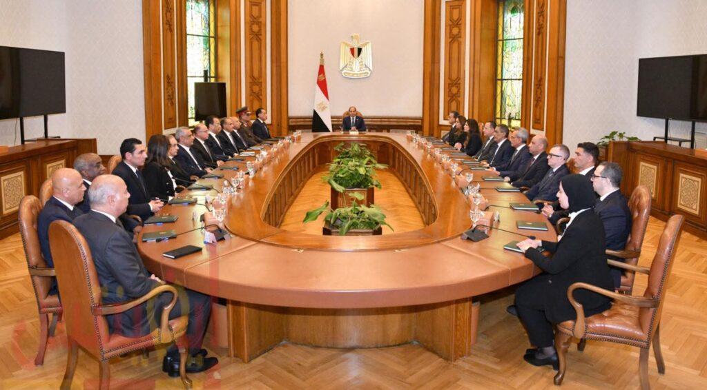 وأضاف المتحدث الرسمي، أنه عقب أداء اليمين الدستورية لنائب رئيس الوزراء والوزراء ونواب الوزراء الجدد، تم التقاط صورة تذكارية لهم مع السيد الرئيس عبدالفتاح السيسي، بحضور السيد رئيس مجلس الوزراء، وتلى ذلك عقد اجتماع للسيد الرئيس معهم، أعرب سيادته في مستهله عن تمنياته للسيد رئيس الوزراء ونائبه والسادة الوزراء ونواب الوزراء الجُدد بالتوفيق والنجاح في أداء مهامهم، مشدداً سيادته على ضرورة السعي الحثيث وبمعايير موضوعية على تحقيق الجدارة وضمان كفاءة الأداء في المؤسسات، مع إجراء نقد ومراجعة ذاتية، وتقييم موضوعي مستمر للأداء، والعمل بإصرار على الاهتمام بالعنصر البشري، وتأهيل الكوادر وفقاً لأعلى المستويات والمعايير لضمان ضخ دماء جديدة مؤهلة في أجهزة ومؤسسات الدولة، وكذا بالقطاع الخاص، مع العمل كذلك على مواصلة إجراء التطوير والإصلاح في مؤسسات وأجهزة الدولة والاستعانة تحقيقاً لهذا الغرض بالمتخصصين.