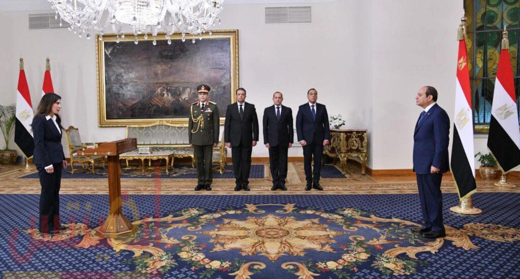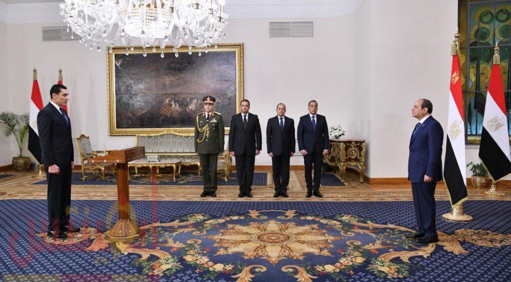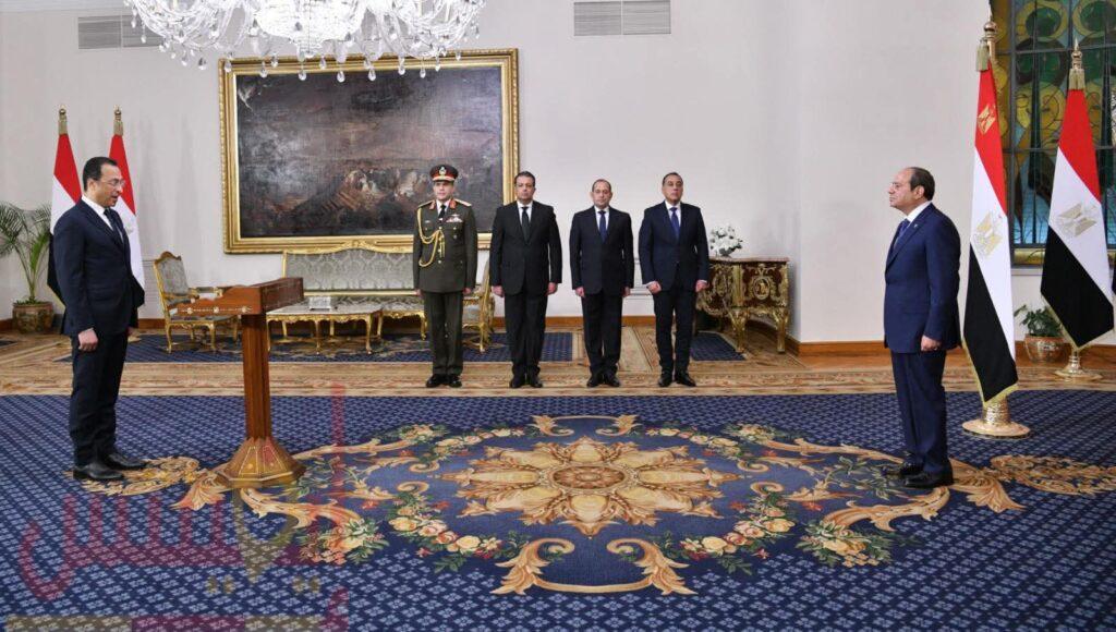 وجاء أداء اليمين الدستورية لكل من: الدكتور حسين محمد أحمد عيسى نائبًا لرئيس مجلس الوزراء للشئون الاقتصادية، والفريق أول مهندسأشرف سالم زاهر علي منصور وزيرًا للدفاع والإنتاج الحربي، والدكتور خالد عبد الغفار وزيرًا للصحة والسكان، والفريق مهندس كامل الوزير وزيرًا للنقل، والدكتورة منال عوض وزيرةً للتنمية المحلية والبيئة، والدكتور بدر عبد العاطي وزيرًا للخارجية والتعاون الدولي والمصريين بالخارج، والمهندسة راندة المنشاوي وزيرةً للإسكان والمرافق والمجتمعات العمرانية، والمهندس رأفت هندي وزيرًا للاتصالات وتكنولوجيا المعلومات، والدكتور عبد العزيز قنصوه وزيرًا للتعليم العالي والبحث العلمي، والدكتور محمد فريد وزيرًا للاستثمار والتجارة الخارجية، والكاتب الصحفي ضياء رشوان وزيرًا للدولة للإعلام، والدكتور صلاح سليمان وزيرًا للدولة للإنتاج الحربي، والمستشار هاني عازر وزيرًا لشئون المجالس النيابية، والمستشار محمود الشريف وزيرًا للعدل، وحسن رداد وزيرًا للعمل، والدكتورة جيهان زكي وزيرةً للثقافة، والدكتور أحمد رستم وزيرًا للتخطيط والتنمية الاقتصادية، وجوهر نبيل وزيرًا للشباب والرياضة، والمهندس خالد ماهر وزيرًا للصناعة، إلى جانب نواب الوزراء الجدد في وزارات الخارجية والإسكان.