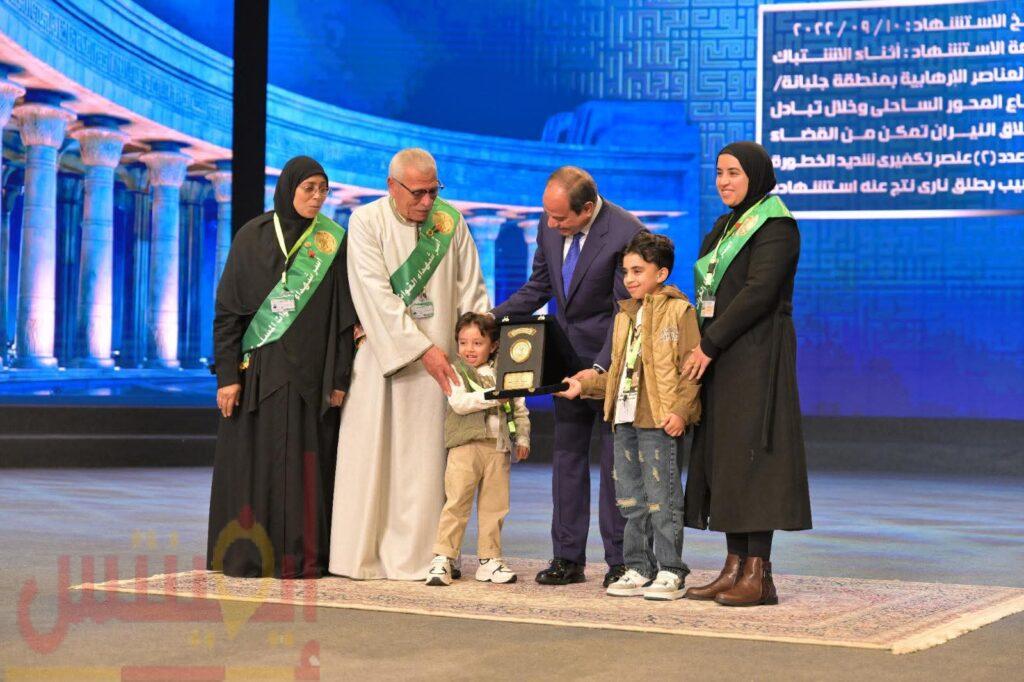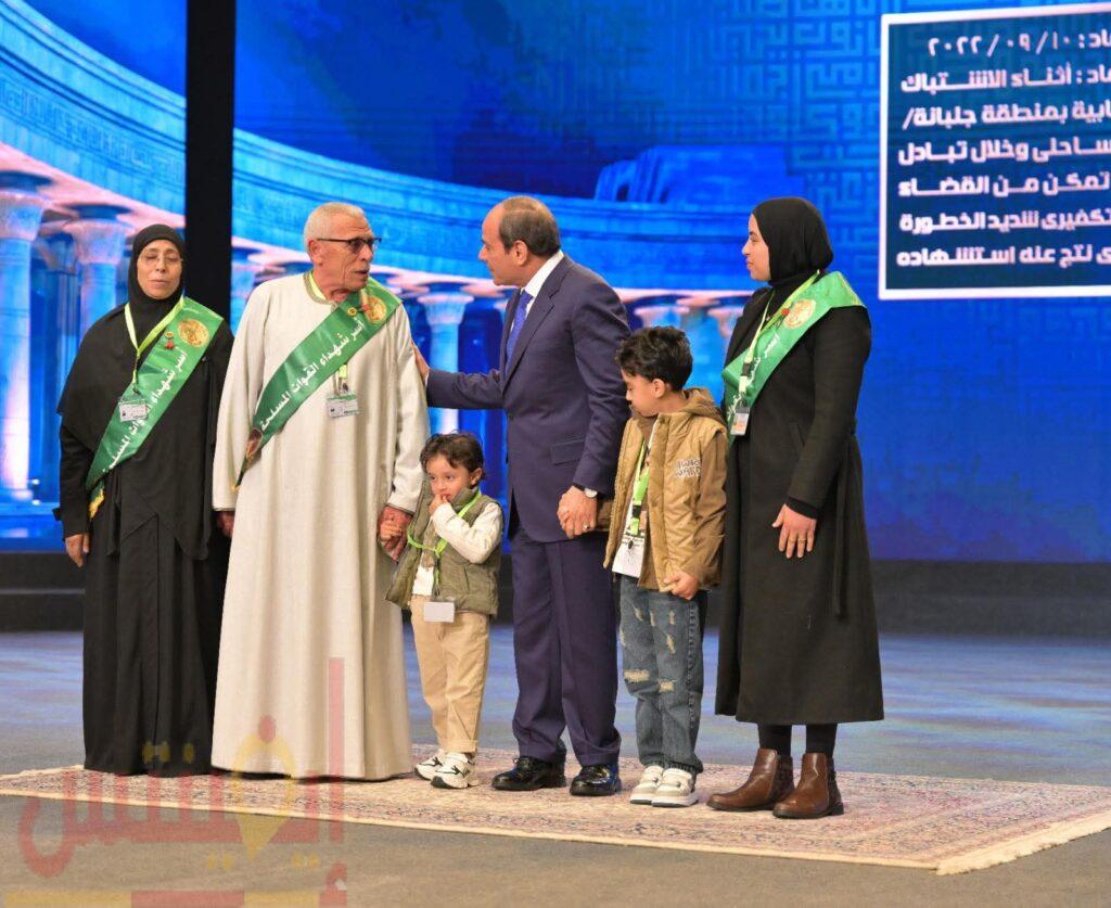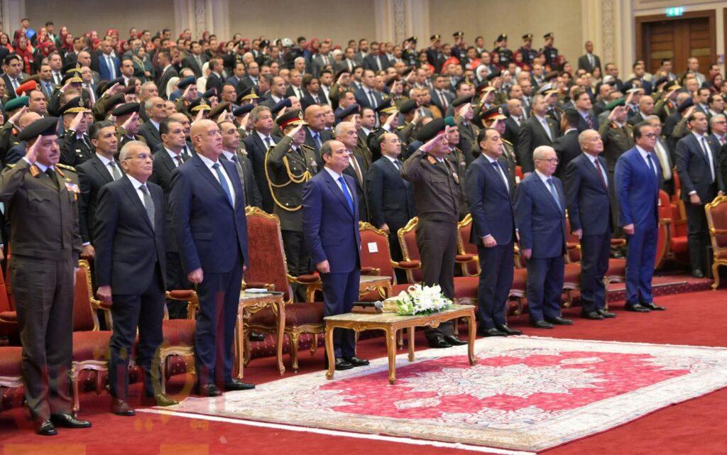 وذكر السفير محمد الشناوي، المتحدث الرسمي باسم رئاسة الجمهورية، أن السيد الرئيس عبدالفتاح السيسي قام بعد ذلك بتكريم عدد من أسر الشهداء ومصابي العمليات الحربية، ليلقي سيادته بعد ذلك كلمة بهذه المناسبة، فيما يلي نصها:
