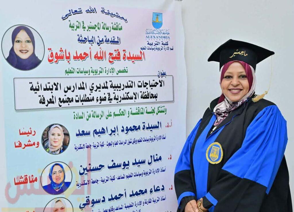 متابعة د عبير سعد سلامة شهدت عروس البحر الابيض المتوسط مناقشة رسالة الماجستير في التربية بكلية التربية قسم الإدارة التربوية وسياسات التعليم المقدمة من الباحثة السيدة فتح الله أحمد باشوق تخصص الإدارة التربوية وسياسات التعليم بعنوان الاحتياجات التدريبية لمديري المدارس الابتدائية بمحافظة الإسكندرية في ضوء متطلبات مجتمع المعرفة وتتشكل لجنة المناقشة والحكم على الرسالة من السادة أ.د. السيدة محمود إبراهيم سعد أستاذا الإدارة التربوية وسياسات التعليم ووكيل شئون الدراسات العليا والبحوث - كلية التربية - جامعة الإسكندرية رئيسا ومشرفا منال سيد يوسف حسنين أستاذ الإدارة التربوية وسياسات التعليم المساعد - كلية التربية - جامعة الإسكندرية دعاء محمد أحمد دسوقي أستاذ التربية المقارنة والإدارة التعليمية المساعد وقائم بعمل رئيس قسم التربية كلية التربية - جامعة ٦ أكتوبر بقاعة المؤتمرات والندوات بالدور الأول بالكلية