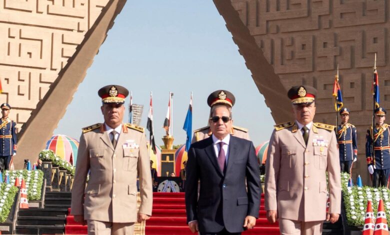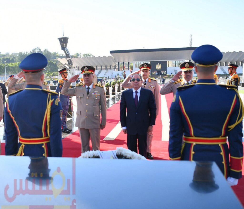 الرئيس السيسي قام بوضع إكليل من الزهور على النصب التذكاري لشهداء القوات المسلحة وقبر الرئيس السادات بمناسبة الذكرى الرابعة والأربعين لتحرير سيناء