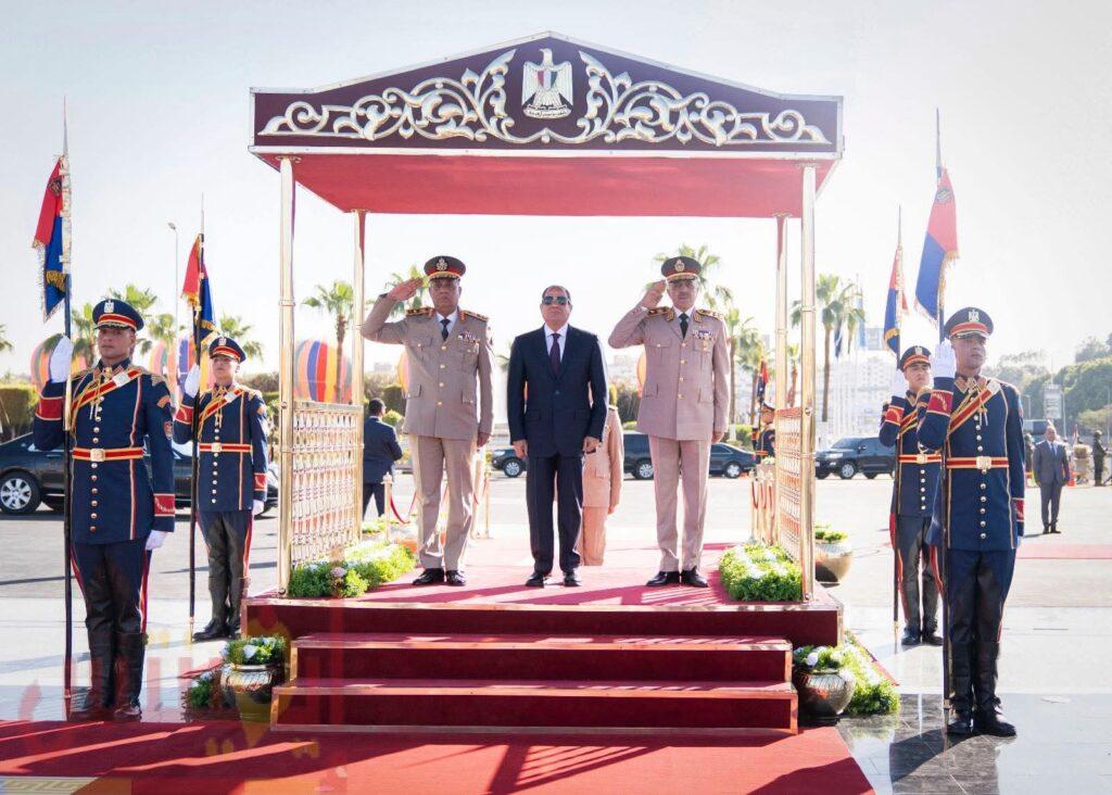 وصرح السفير محمد الشناوي، المُتحدث الرسمي باسم رئاسة الجمهورية، بأنه كان في استقبال السيد الرئيس عبدالفتاح السيسي عند وصول سيادته إلى منطقة النصب التذكاري لشهداء القوات المسلحة الفريق أشرف سالم زاهر القائد العام للقوات المسلحة وزير الدفاع والإنتاج الحربي، والفريق أحمد خليفة رئيس أركان حرب القوات المسلحة، حيث أدى حرس الشرف التحية وعزفت الموسيقى السلام الوطني عند وصول السيد الرئيس.