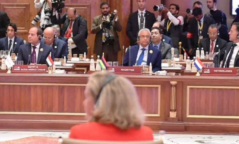 في سياق متصل، وفى إطار تشرفي بتولي رئاسة اللجنة التوجيهية لرؤساء دول وحكومات وكالة الاتحاد الإفريقي للتنمية “النيباد”، فلقد وضعنا، بالتشاور مع أشقائنا الأفارقة، أهدافاً محددةً لدعم دولنا، تركز على دفع التكامل الاقتصادي القاري، وتسريع تنفيذ أجندة التنمية الأفريقية، وتفعيل اتفاقية التجارة الحرة القارية، وحشد الموارد للمجالات ذات الأولوية اتصالاً بالبنية التحتية والطاقة، والاتصالات، وتأمين الغذاء، وكذلك معالجة أزمة ديون القارة، حيث إن كل ذلك يعزز من قدرات القارة على الإسهام في المنظومة العالمية، سياسياً واقتصادياً، من أجل تحقيق الاستقرار، والقدرة على مواجهة التحديات العالمية. ولا يفوتني في هذا السياق، أن أثمن تعزيز التمثيل الإفريقي بمجموعة العشرين.