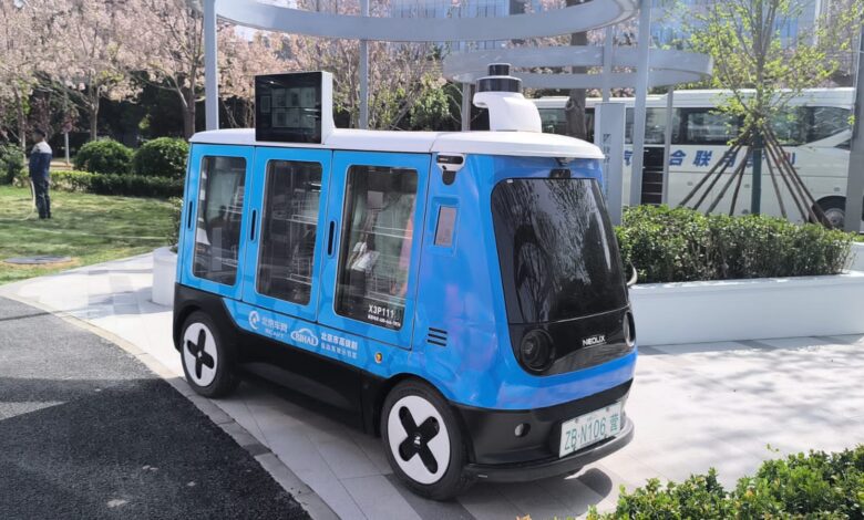 أطلقت الصين التشغيل التجريبى للمينى باص الذكى الذى يعمل بدون سائق فى شوارع بكين