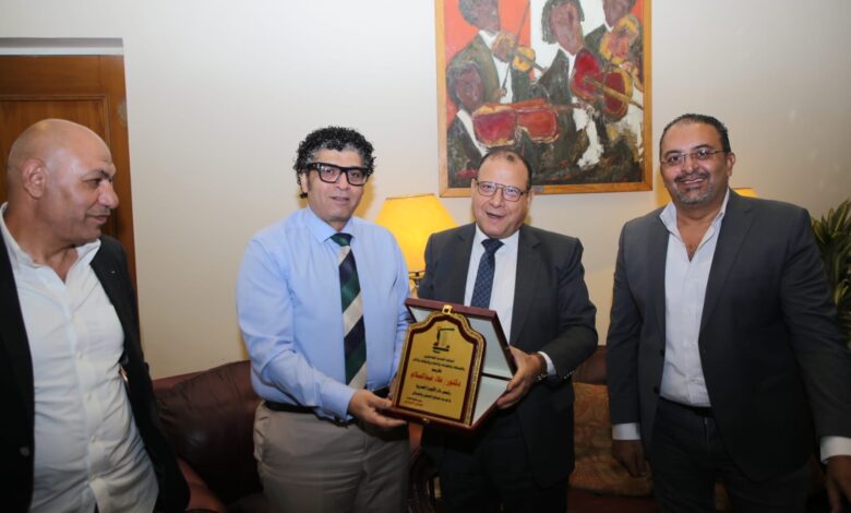 نائب رئيس الإتحاد العام لنقابات عمال مصر يهدى درع التميز للدكتور علاء عبد السلام