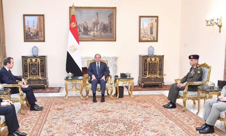 Today, President Abdel Fattah El-Sisi received French Minister of the Armed Forces Sébastien Lecornu in the presence of Minister of Defense and Military Production General Mohamed Zaki.