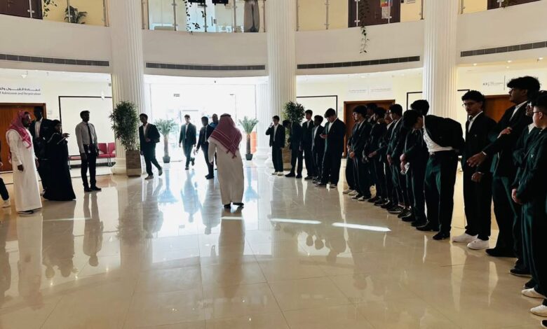 وقد كان في استقبال الوفد سعادة وكيل كلية الإعلان، الدكتور بدر بطاطي، وعدد من ممثلي كليات الجامعة، حيث تم الترحيب بالوفد الزائر واصطحابهم في جولة تعريفية شملت مختلف مرافق وكليات الجامعة، حيث اضطلع الطلاب خلالها على البرامج الأكاديمية والأنشطة التي تقدمها الجامعة، إضافة إلى البيئة التعليمية المتطورة التي تتميز بها.