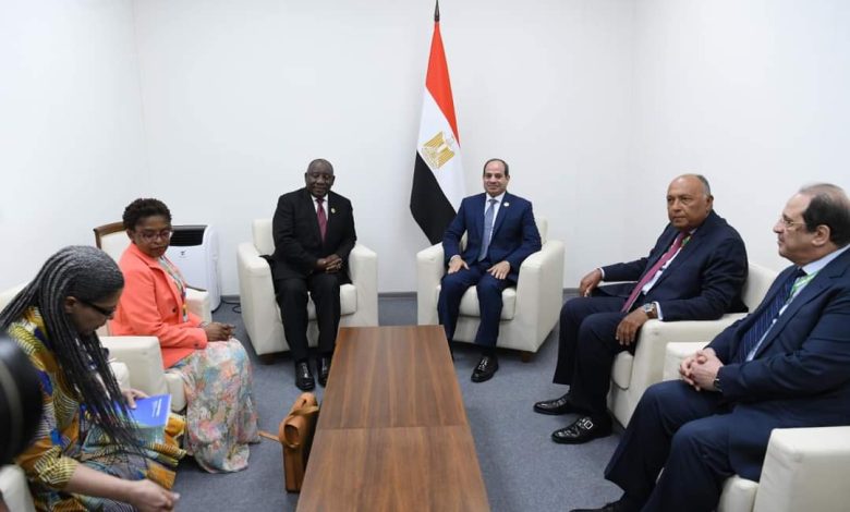 من جانبه، أكد الرئيس رامافوزا حرص جنوب أفريقيا على تطوير علاقات التعاون مع شقيقتها مصر، ودفعها نحو آفاق أرحب من العمل المشترك، فضلاً عن مواصلة التشاور مع مصر بشأن القضايا والتحديات التي تواجه أفريقيا، خاصةً في ظل الدور المصري الرائد على الصعيد الأفريقي، وجهودها في دفع عملية التنمية وصون السلم والأمن بالقارة الأفريقية.