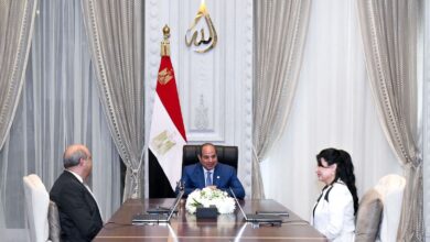 الرئيس السيسي إجتمع مع الدكتور سامح الحفني وزير الطيران وسهير عبد الله رئيسة مصر للطيران وشهد استعراضاً للرؤية الاستراتيجية الشاملة للنهوض بقطاع الطيران المدني