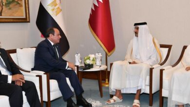 الرئيس السيسي التقي اليوم بسمو الأمير تميم بن حمد آل ثاني أمير دولة قطر عقب وصول سيادته إلى الدوحة للمشاركة في القمة العربية الإسلامية الاستثنائية