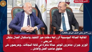محمد.جبران_وزير العمل_يلتقى السفير_اليوناني بالقاهرة_ويؤكد أن_اتفاقية العمالة_الموسمية الزراعية_دخلت حيز التنفيذ_وسيتم استقبال العمال_بشكل تدريجي